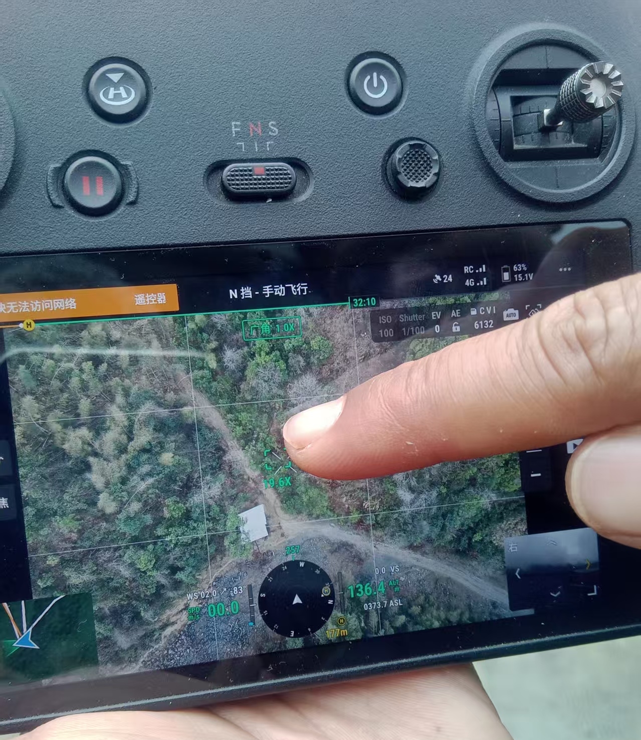随着无人机缓缓升空,高清摄像头实时回传画面,民警在地面通过显示屏“俯瞰”整片区域,原本隐蔽的山坳、沟壑都清晰呈现。这双“空中天眼”快速掠过山林,不一会儿便在一处偏远山坳中发现了移动的白色身影。