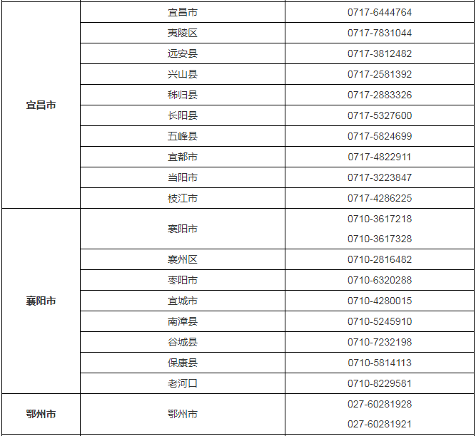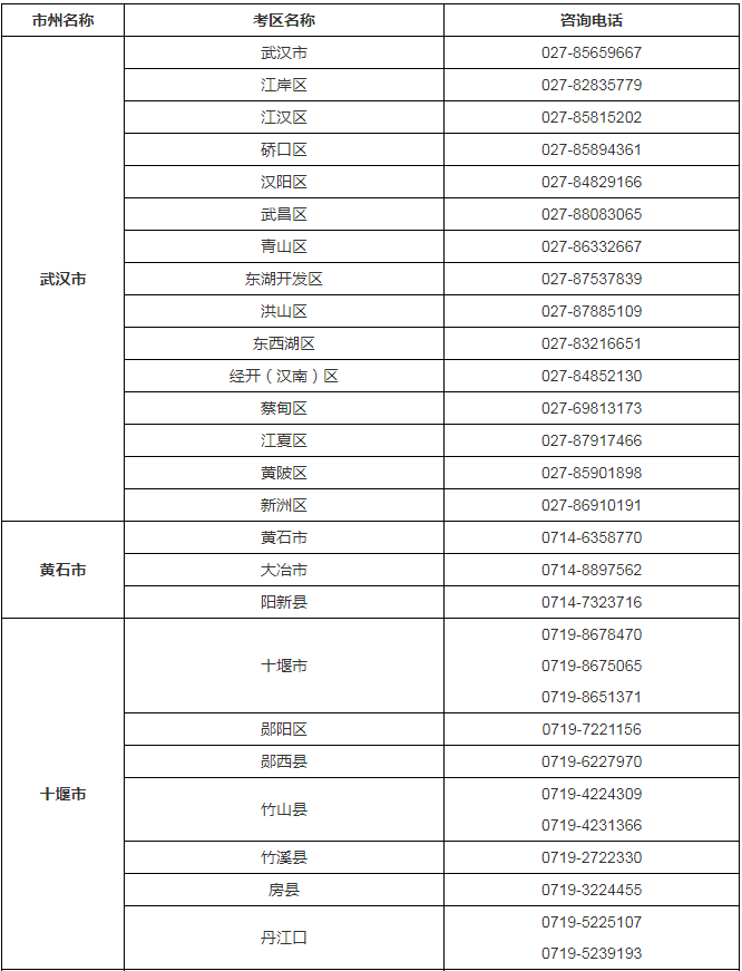 2024年湖北省各市、县考区普通高考报名咨询电话: