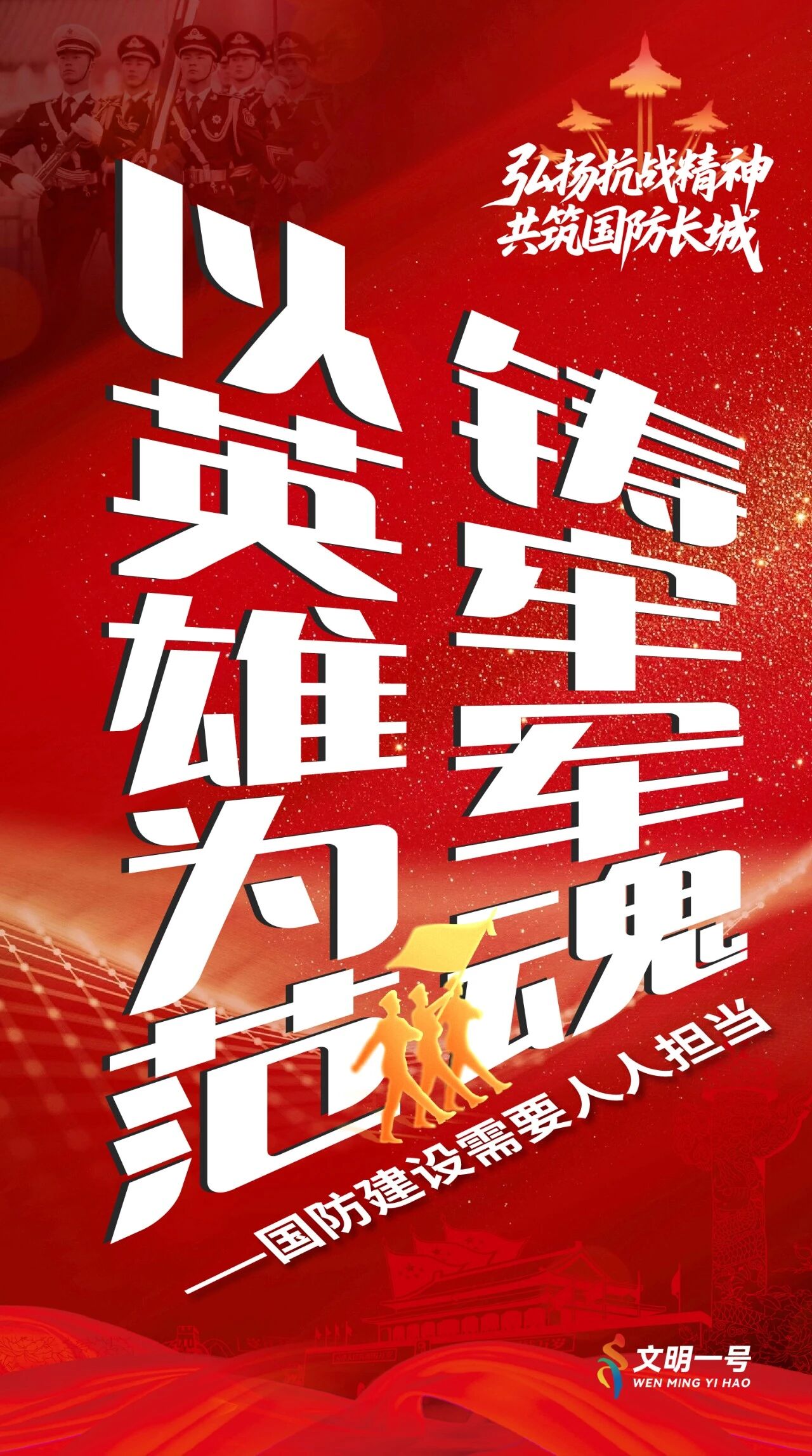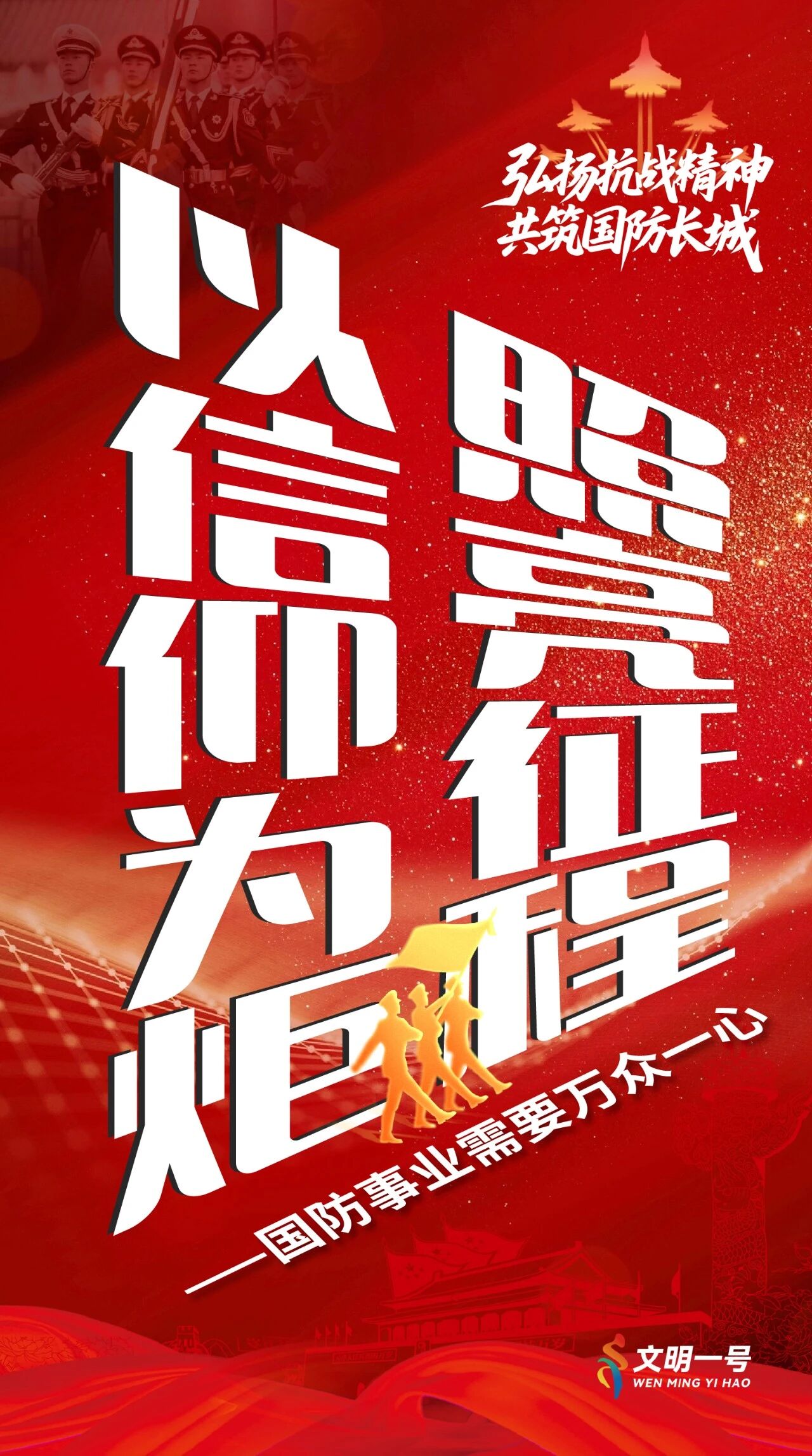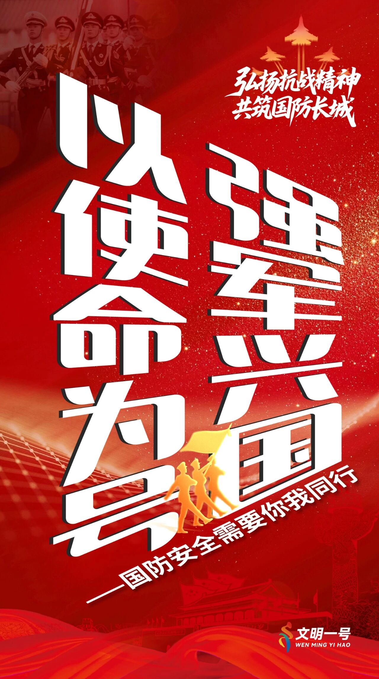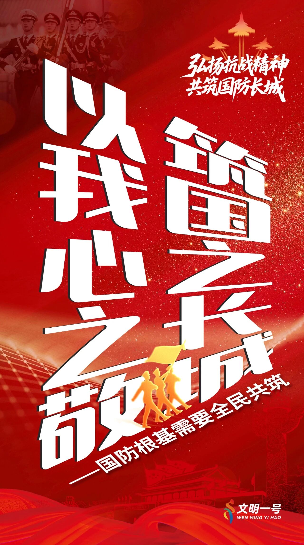 金秋九月,山河铭记,我们迎来中国人民抗日战争暨世界反法西斯战争胜利80周年,也迎来了意义非凡的全民国防教育月,让我们以崇敬意缅怀历史,以赤子之心传承精神,在全社会掀起关心国防、热爱国防、建设国防、保卫国防的热潮,共同凝聚强国强军的磅礴力量!