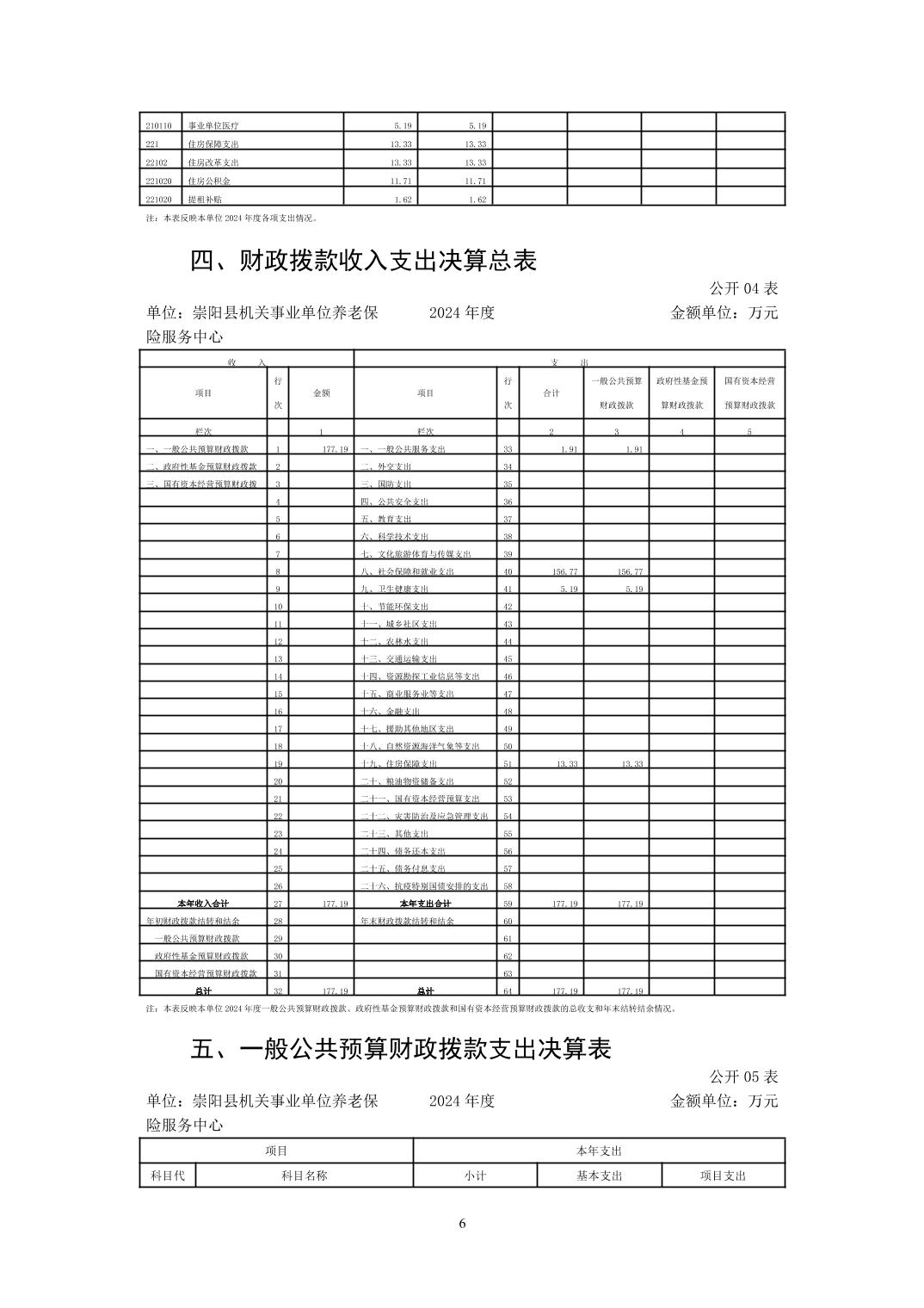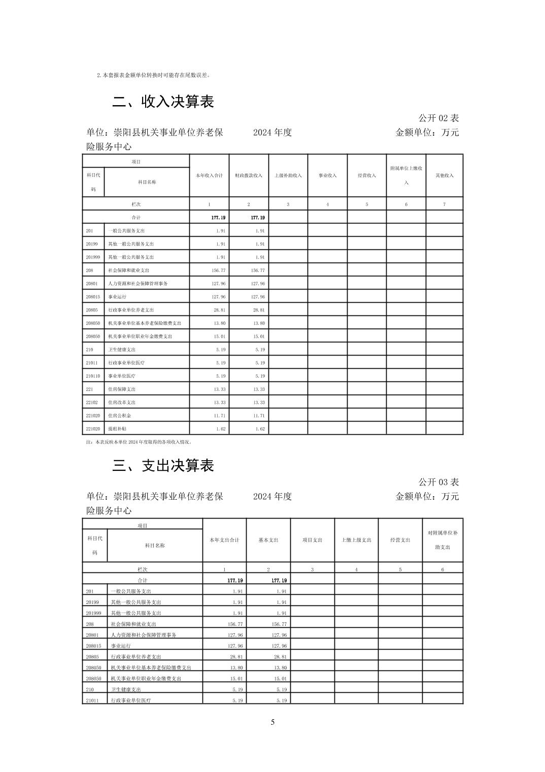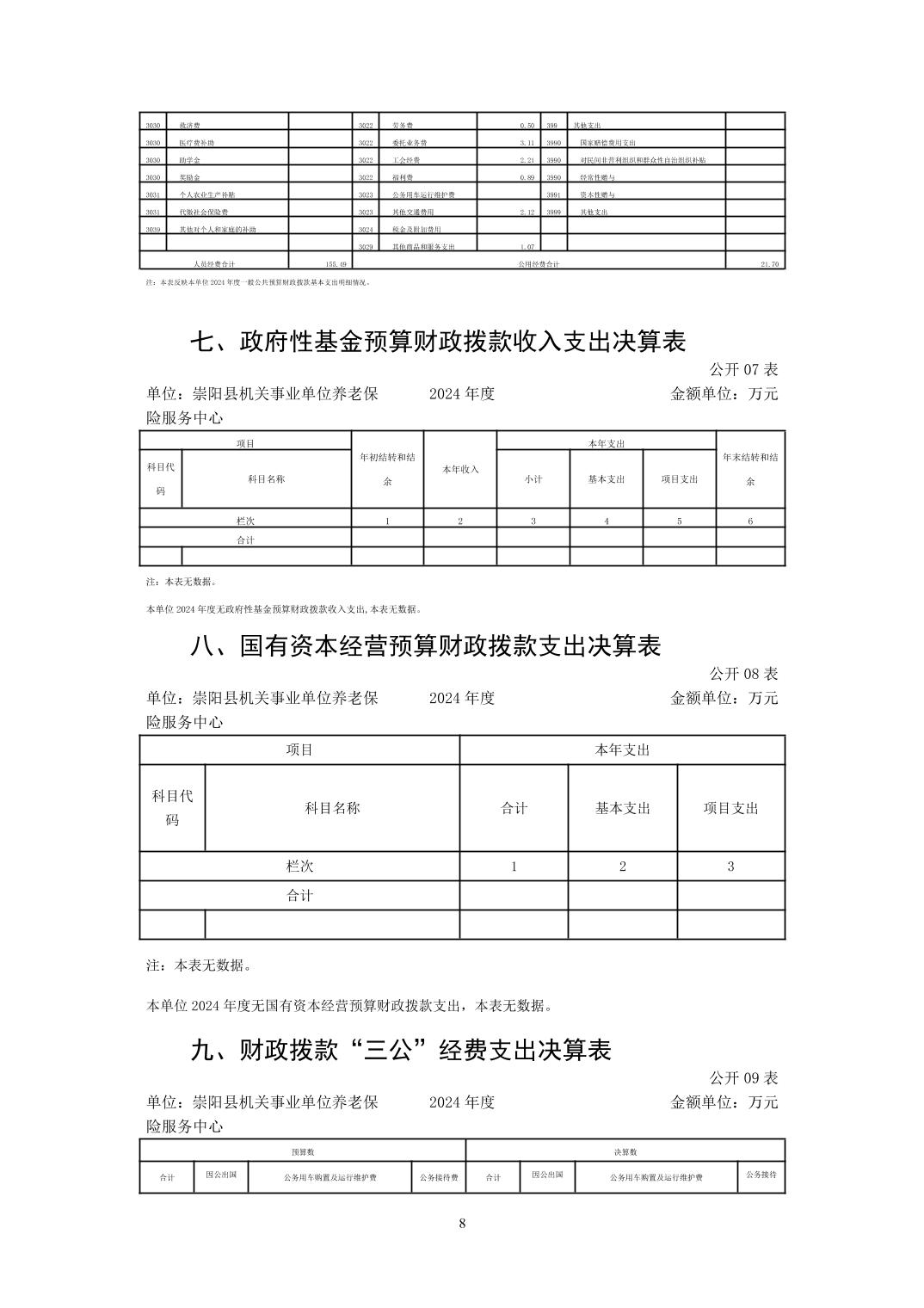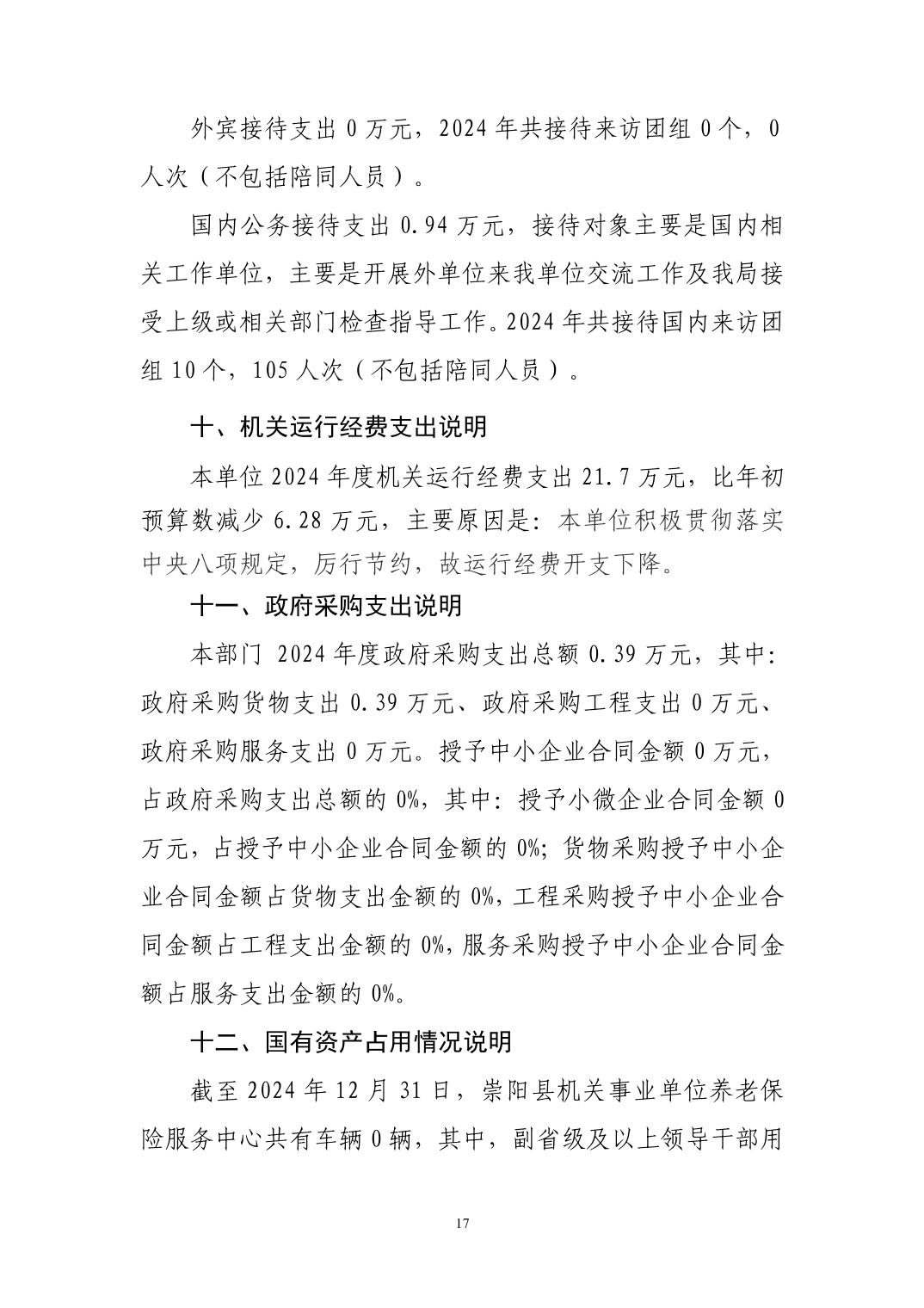 名       称: 崇阳县机关事业单位养老保险服务中心2024年单位决算公开说明 发布日期: 2025年09月19日