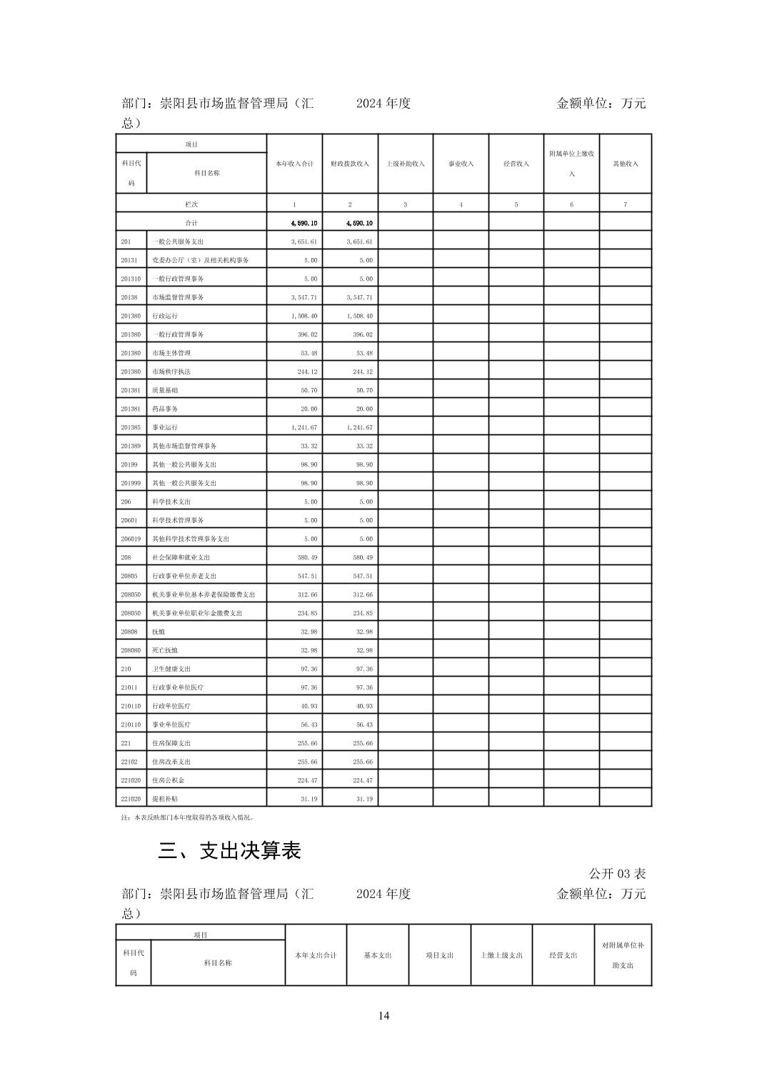 名       称: 崇阳县市场监督管理局(汇总)2024年度部门决算 发布日期: 2025年09月19日