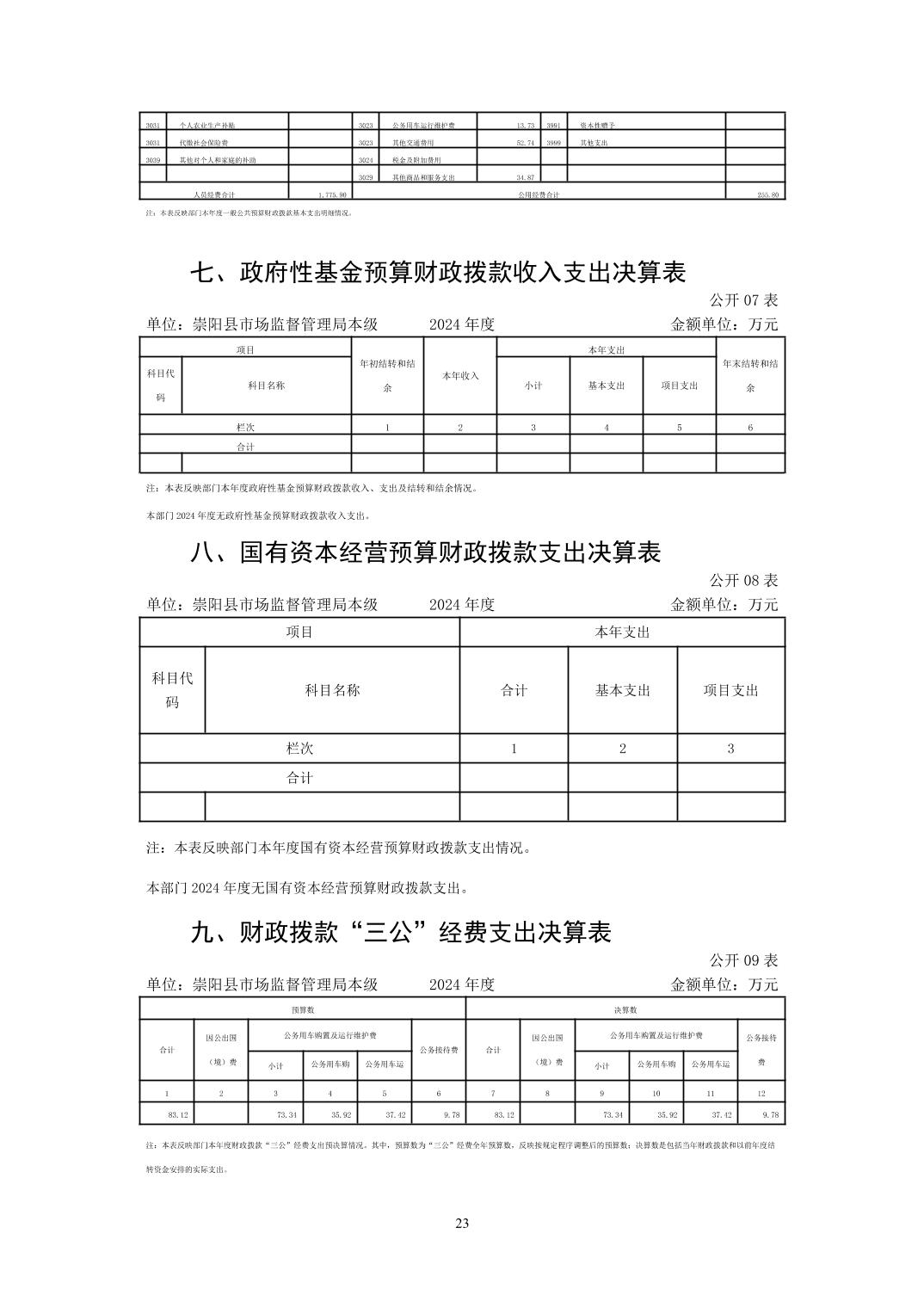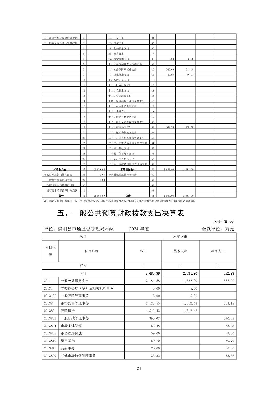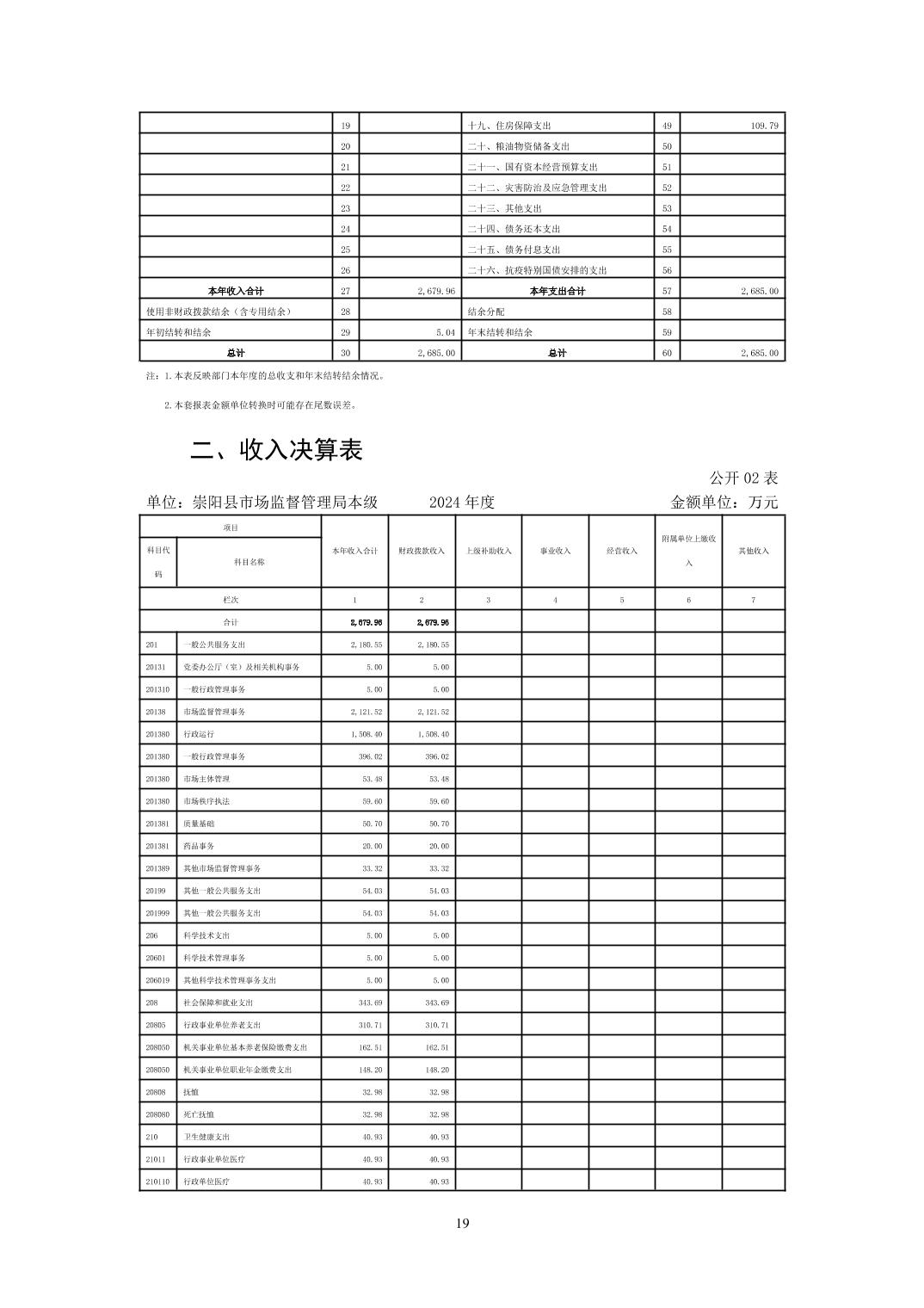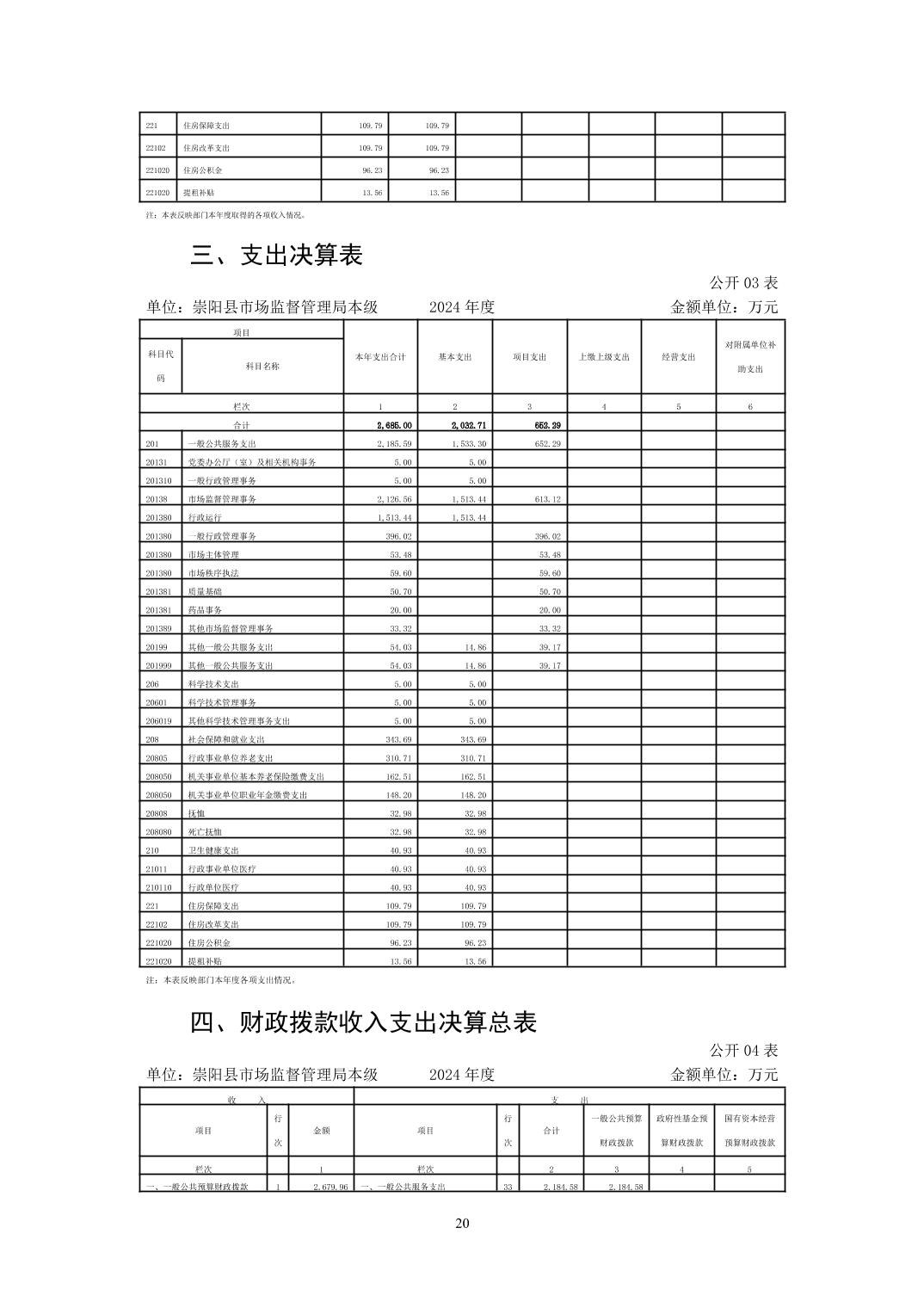 名       称: 2024年崇阳县市场监督管理局(本级)决算公开 发布日期: 2025年09月19日