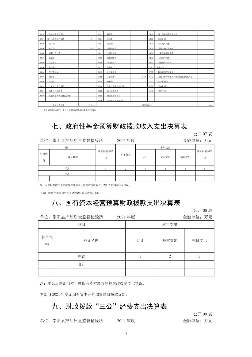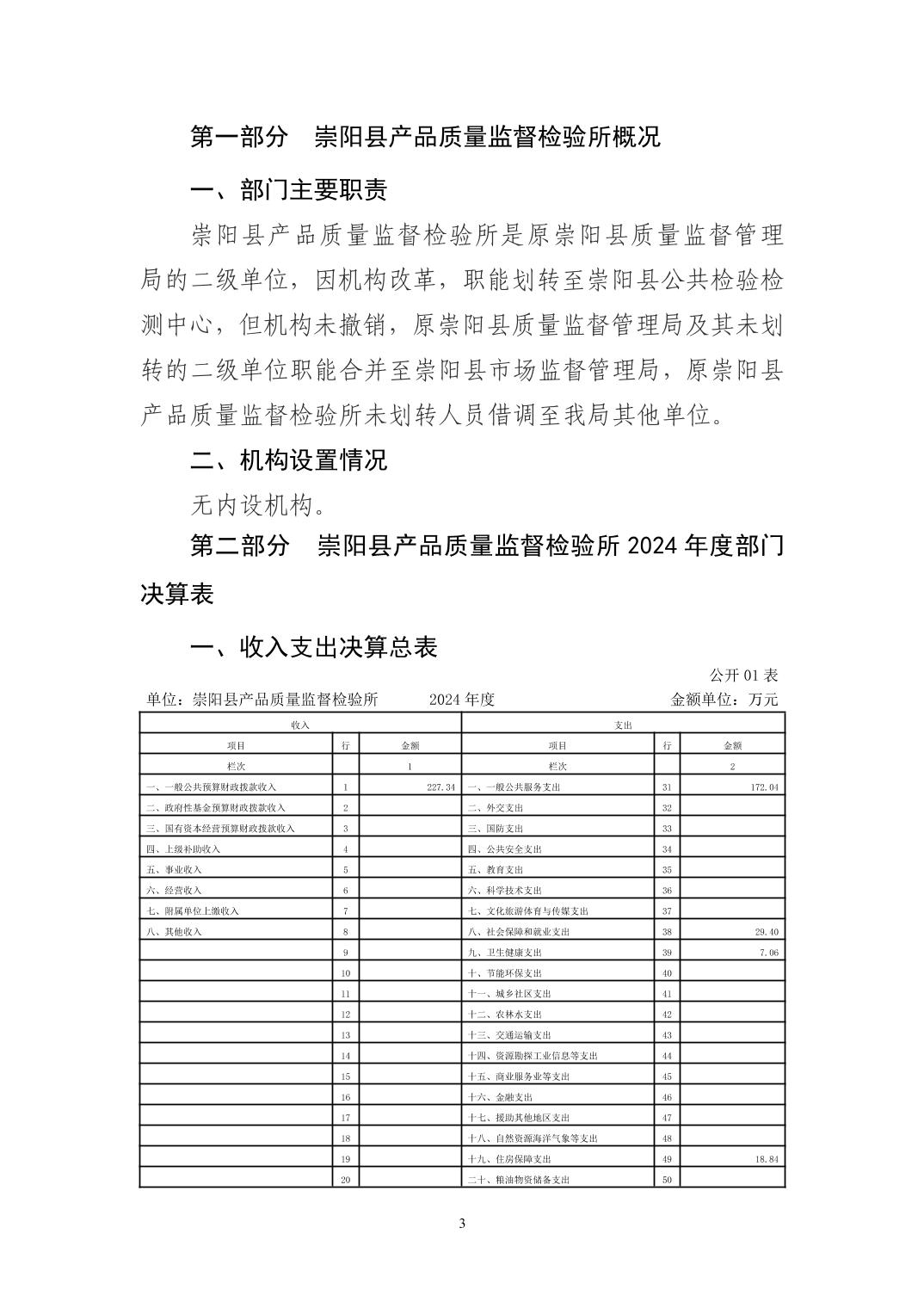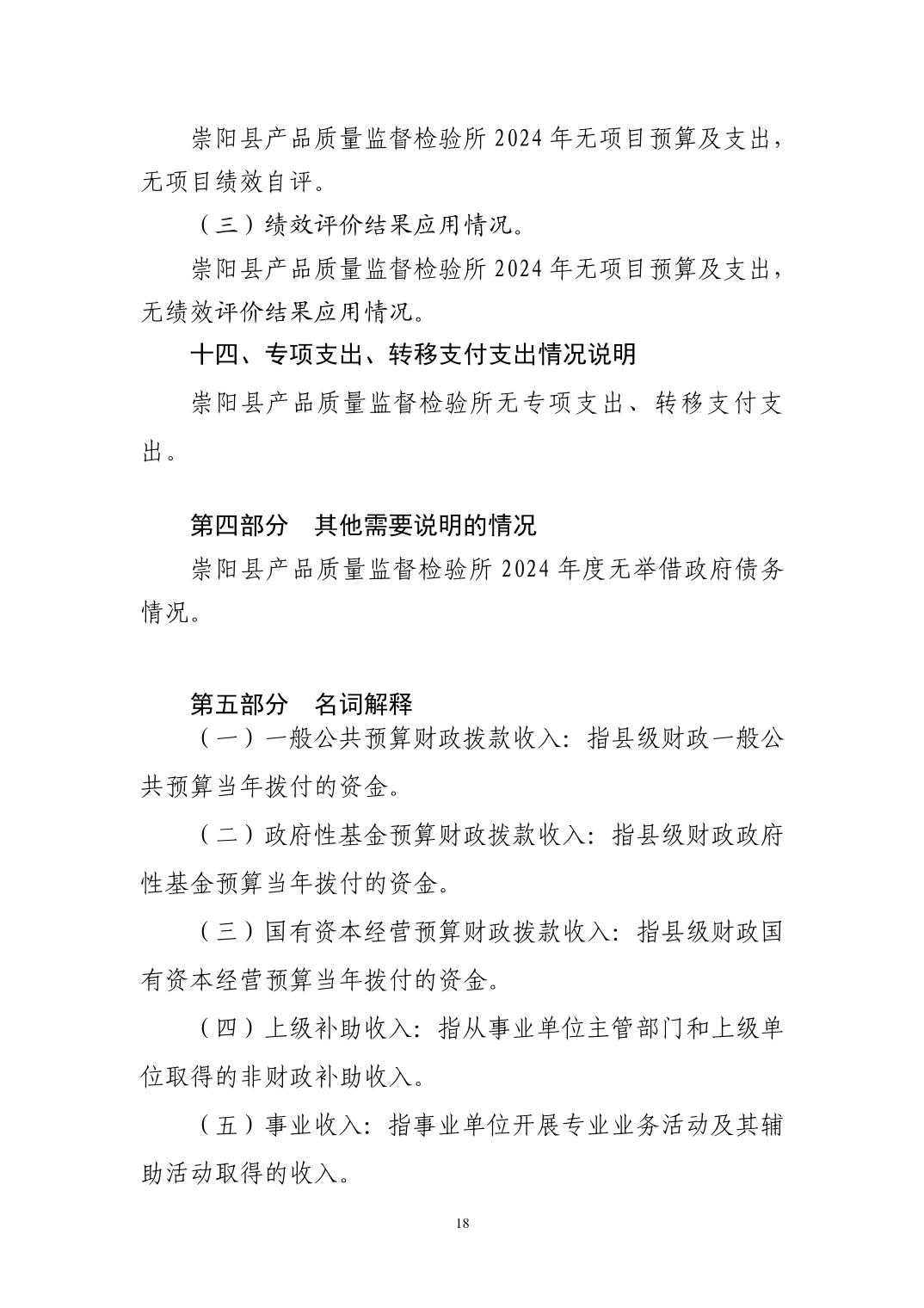 名       称: 2024年崇阳县产品质量监督检验所决算公开 发布日期: 2025年09月19日