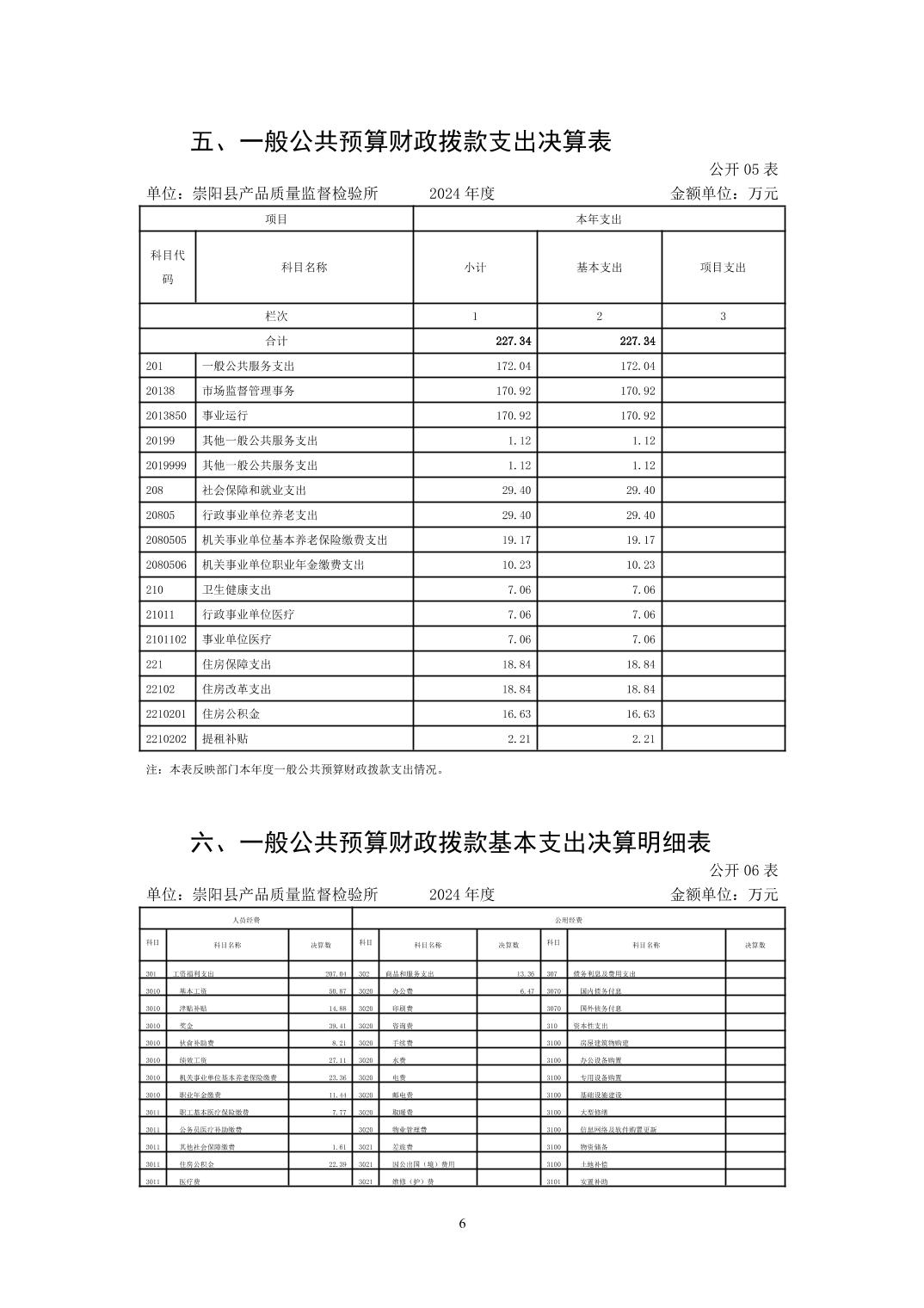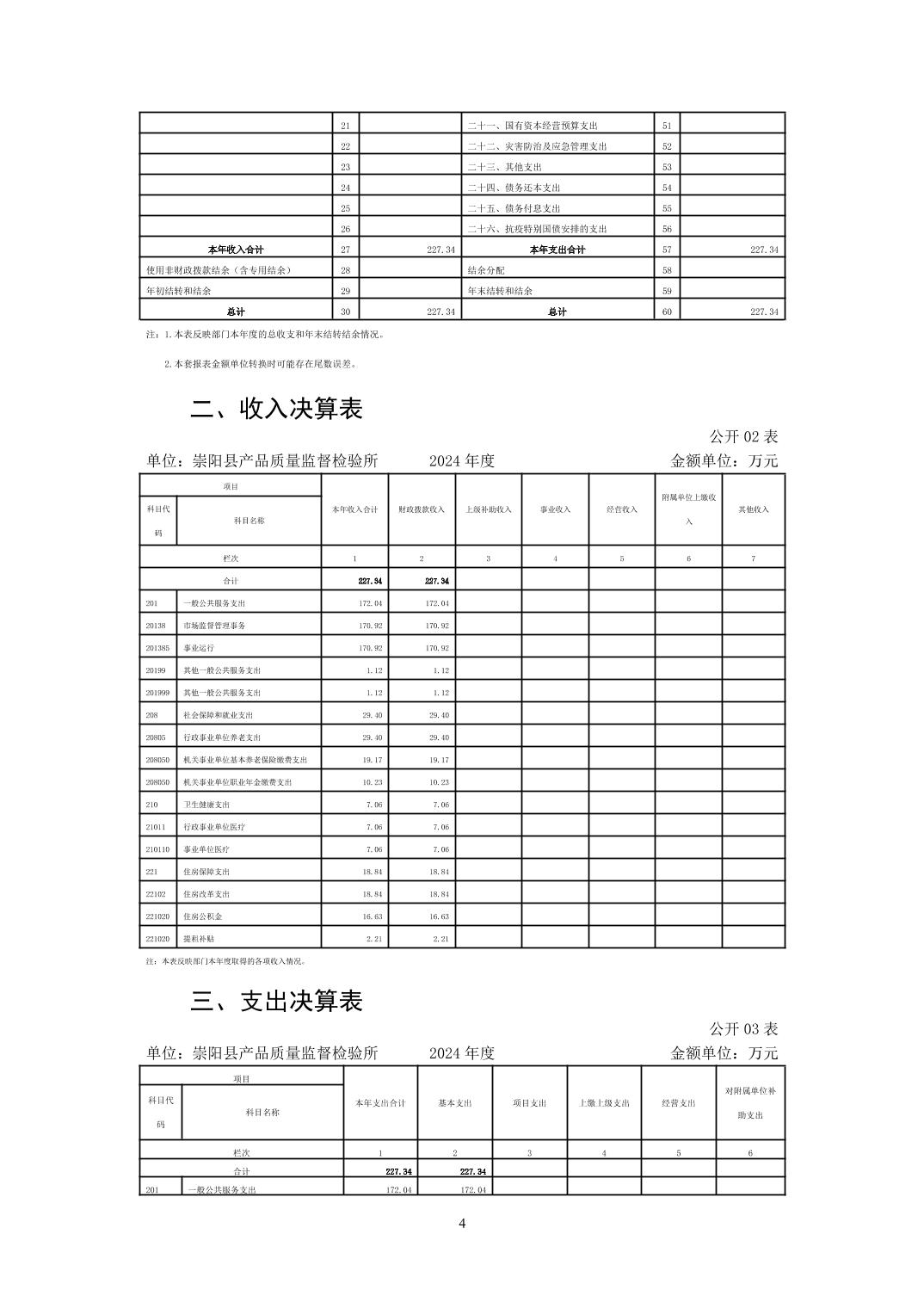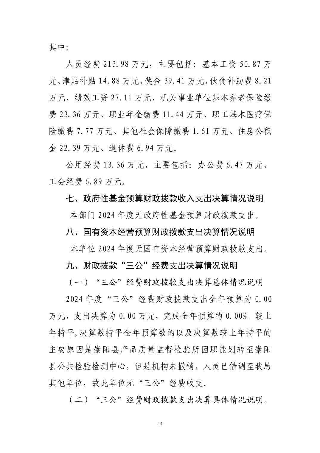 名       称: 2024年崇阳县产品质量监督检验所决算公开 发布日期: 2025年09月19日