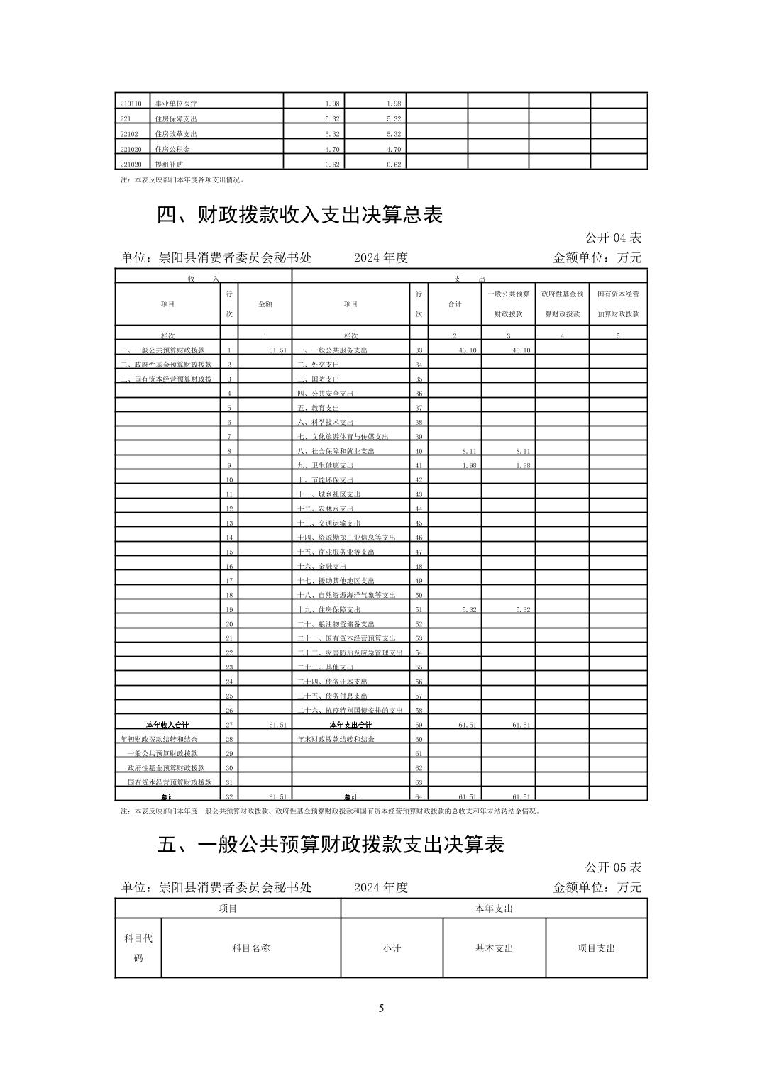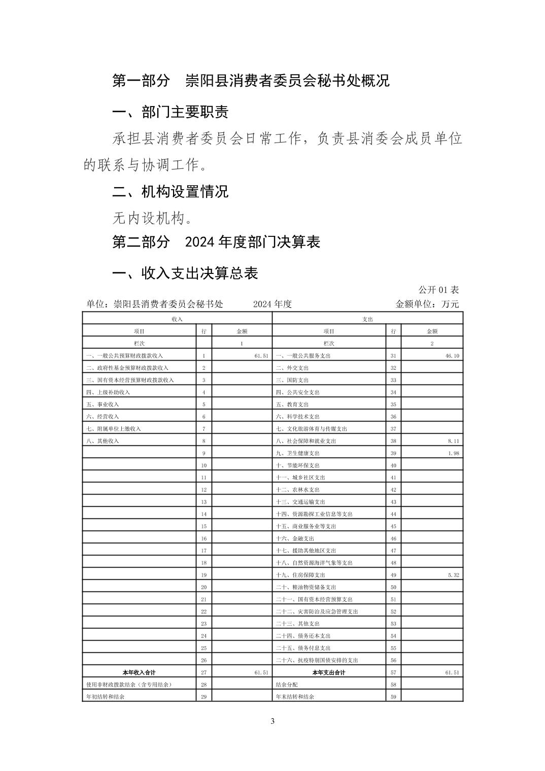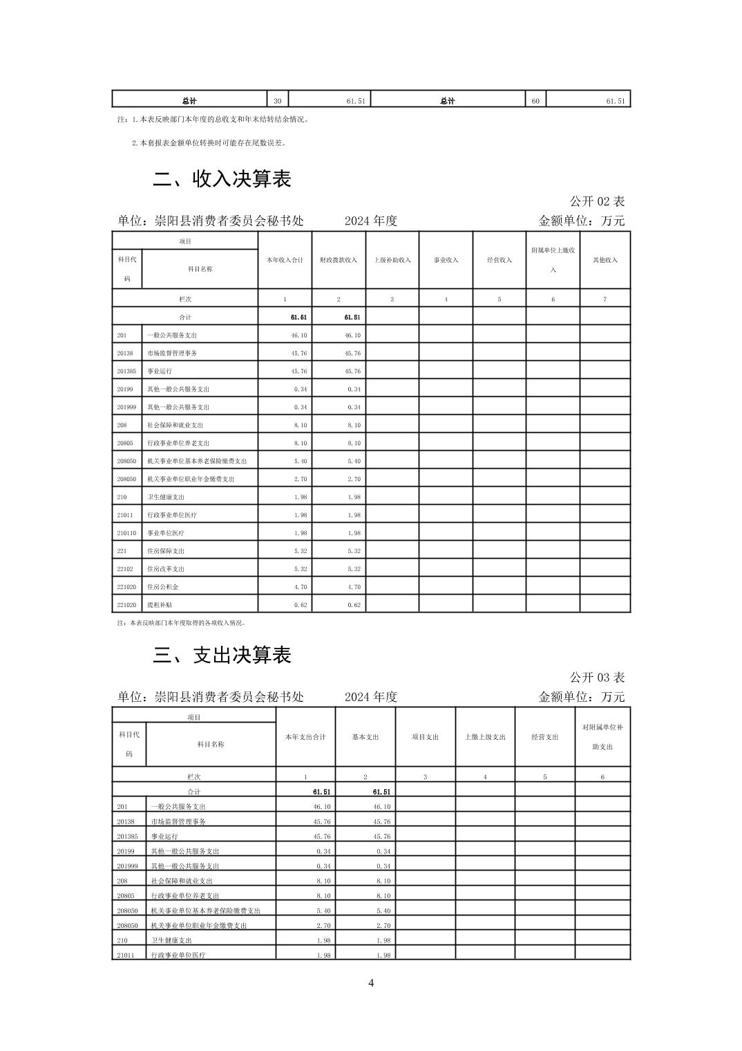 名       称: 2024年崇阳县消费者委员会秘书处决算公开 发布日期: 2025年09月19日