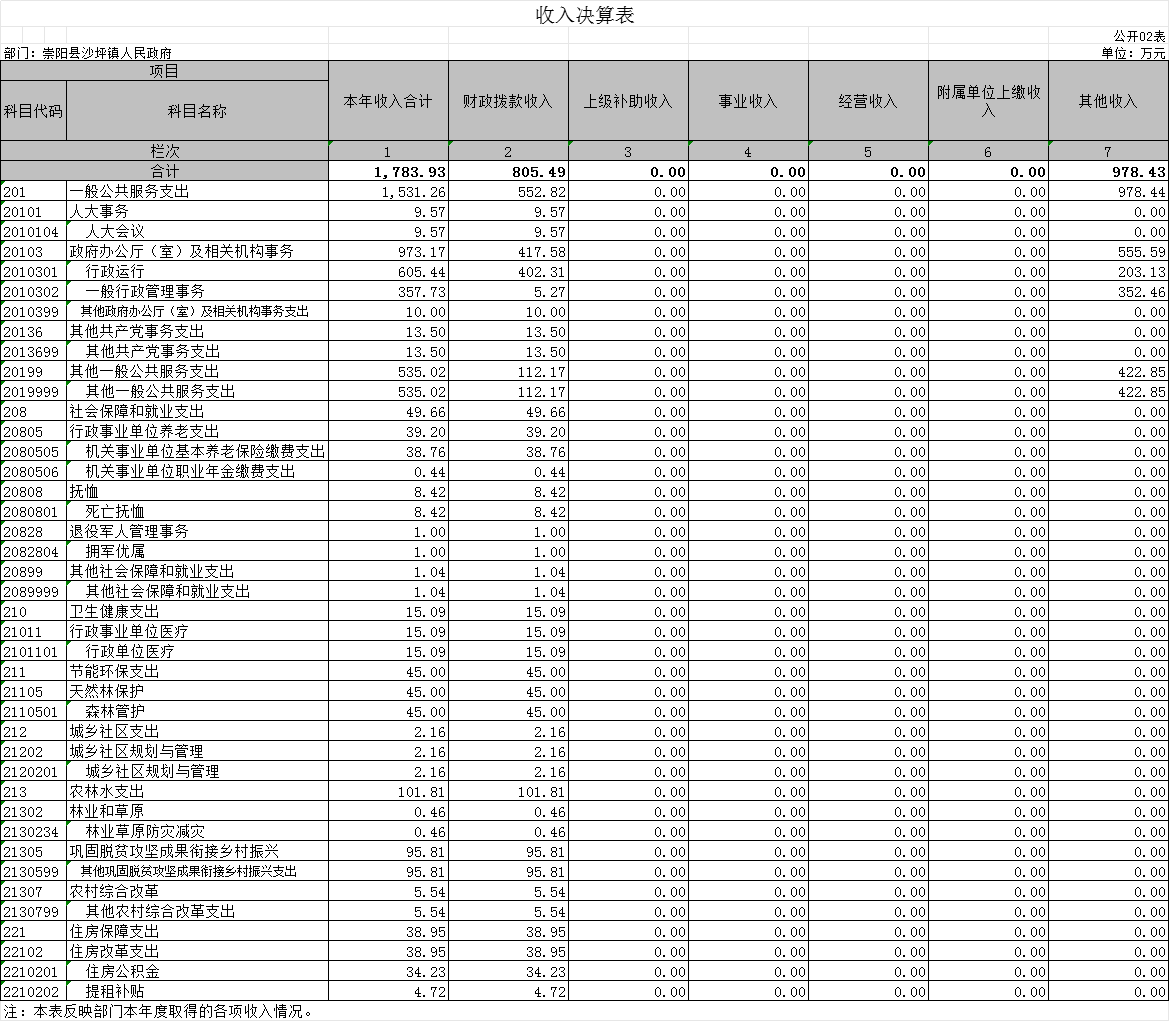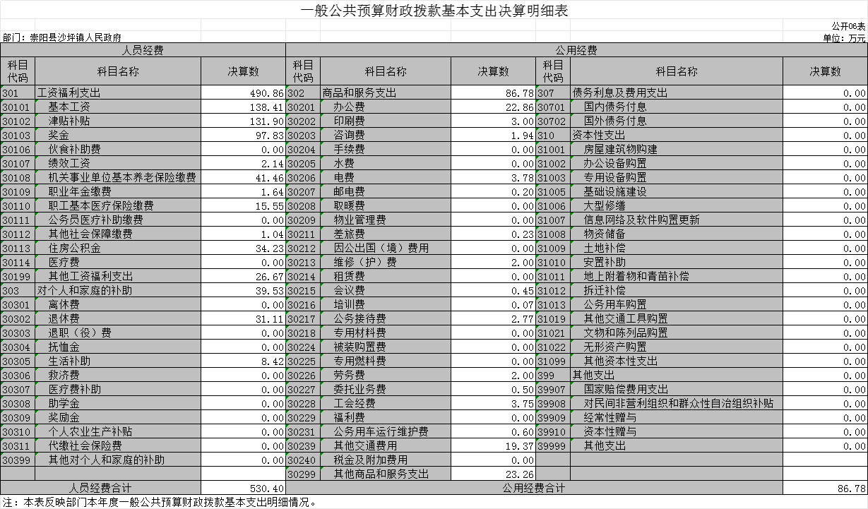 第二部分 崇阳县沙坪镇人民政府2023年度部门决算表