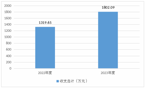 2023年度收、支总计均为1802.09万元。与2022年度相比,收、支总计各增加482.53万元,增长36.56%,主要原因是通修高速项目启动,项目资金经我单位。