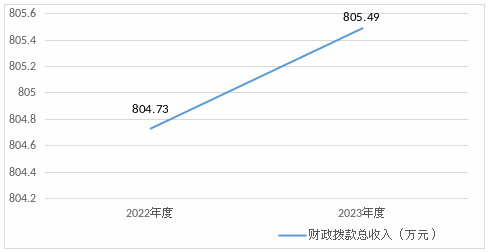 2023年度财政拨款收、支总计均为805.49万元。与2022年度相比,财政拨款收、支总计各增加0.76万元,增长0.09%。主要原因是新增退休人员及新进公务员。
