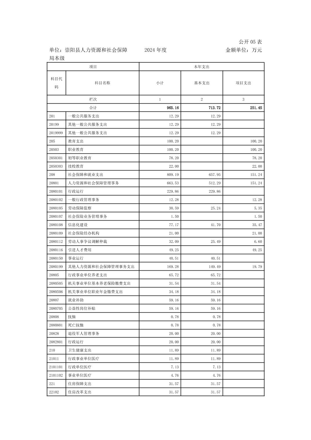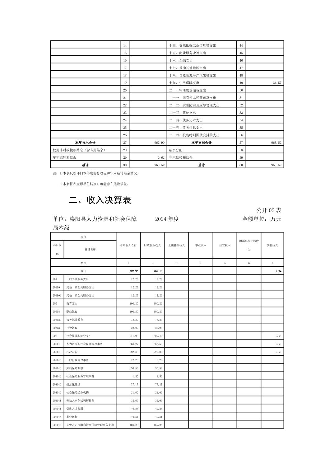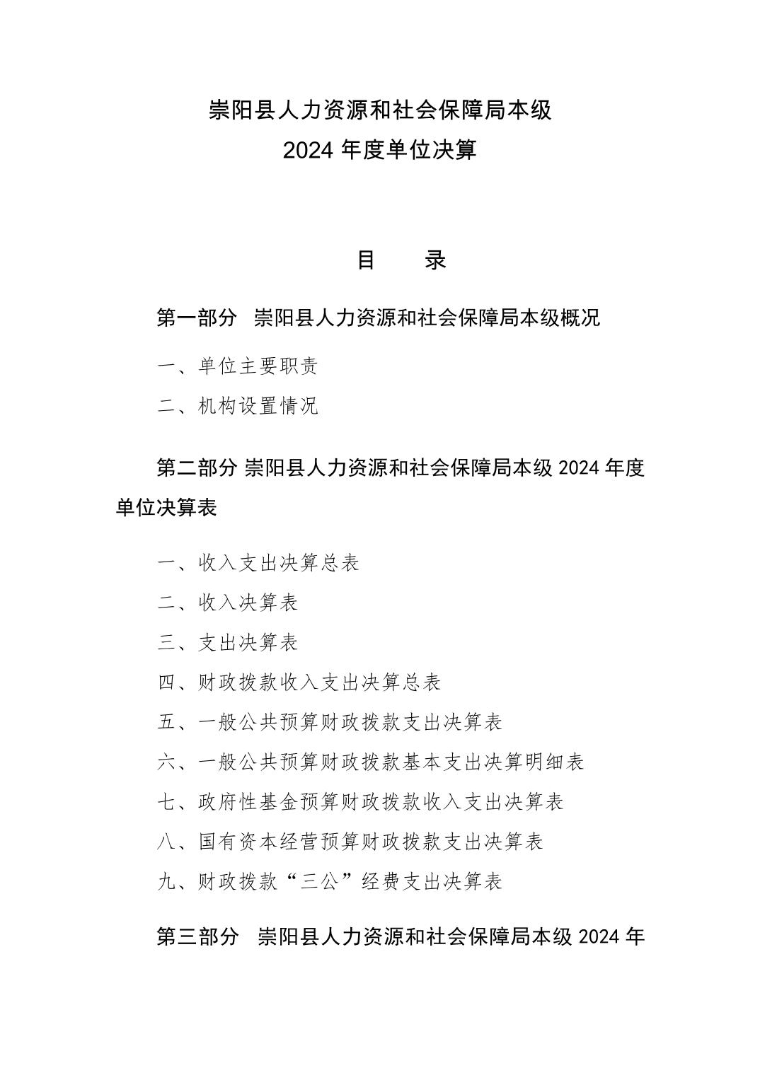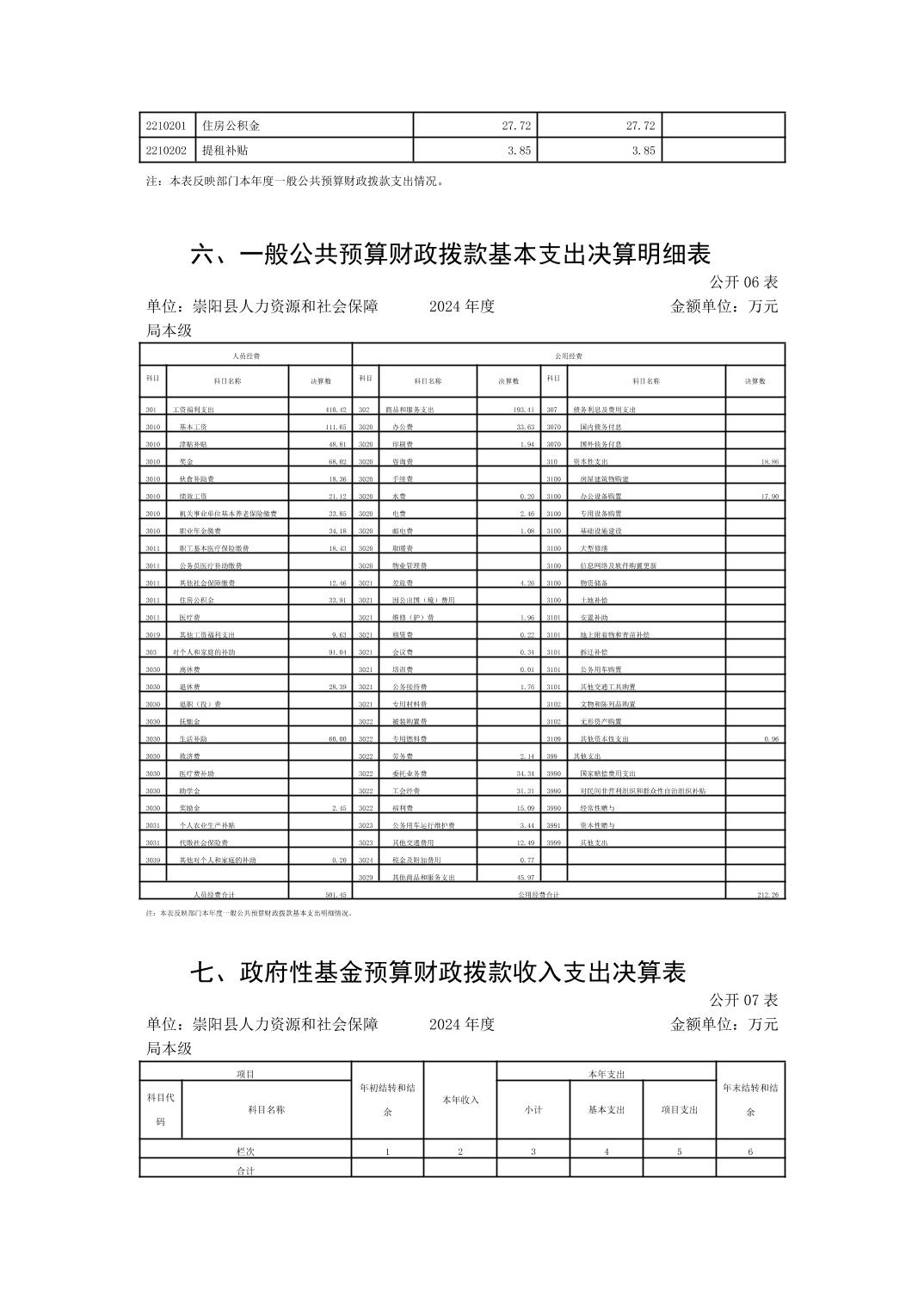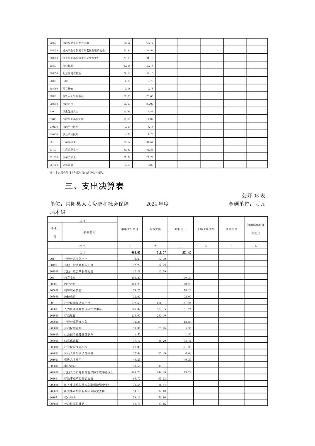 名       称: 崇阳县人力资源和社会保障局本级2024年度单位决算公开 发布日期: 2025年09月19日