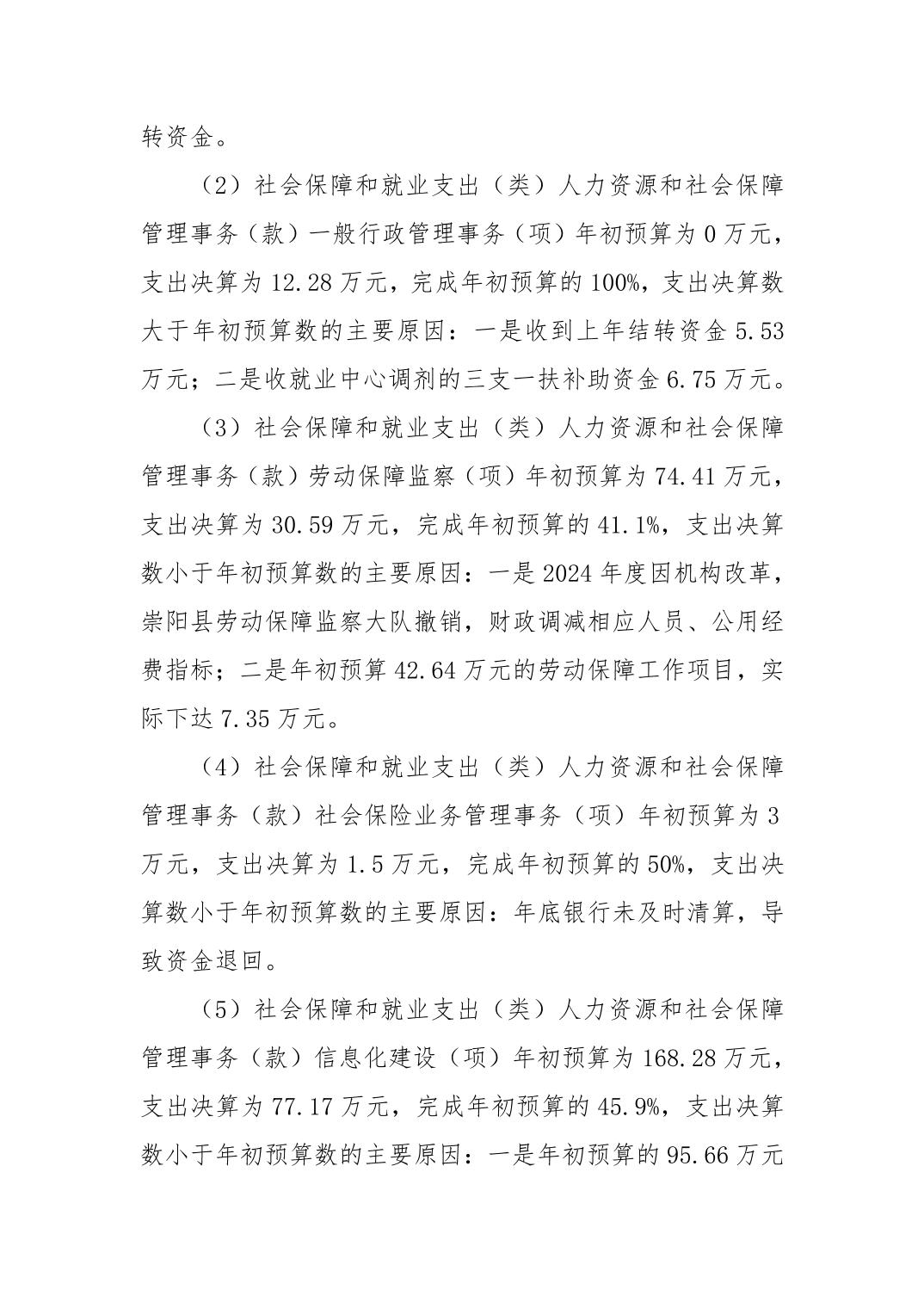 崇阳县人力资源和社会保障局本级2024年度单位决算公开